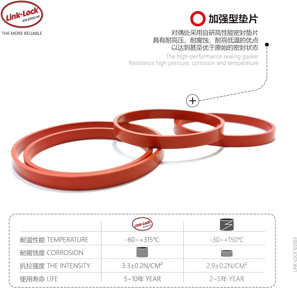 Select a high-quality alternative to LINK-LOCK and hit the road again. LINK-LOCK sealing gasket has been optimized and improved, and has the advantages of high pressure resistance, corrosion resistance, high and low temperature resistance to achieve even better than the original sealing state. The appearance and function of each gasket are perfectly matched with OE original accessories, and all gaskets can be delivered for use after rigorous development and testing.