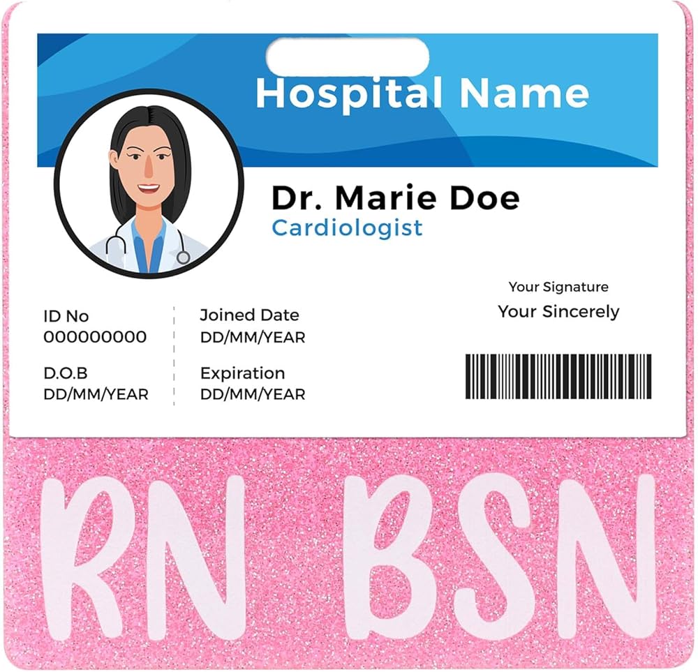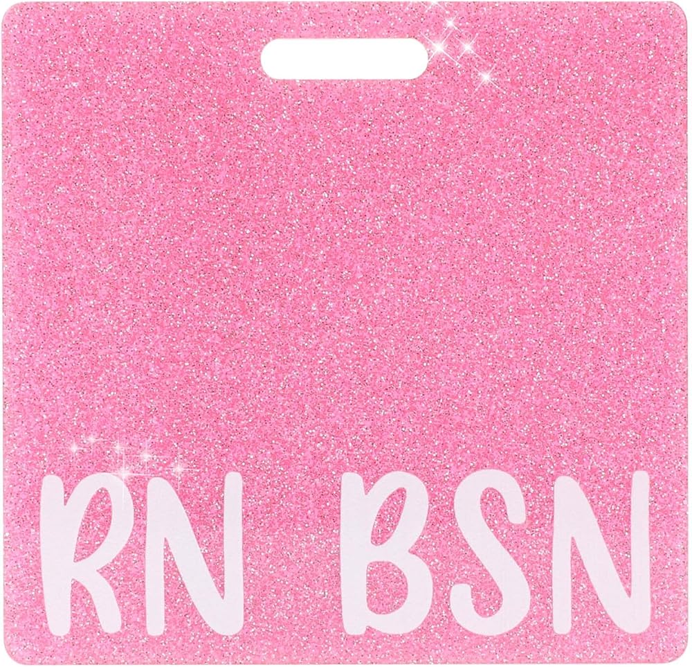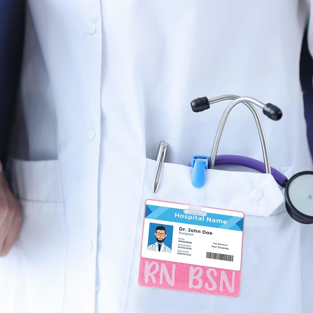 RN BSN Badge Buddy Pink Glitter Nurse Name Tag Holder Horizontal Nursing ID Card Sleeve Bling Heavy Duty Acrylic Badge Holder for Resident Nurses Aesthetic