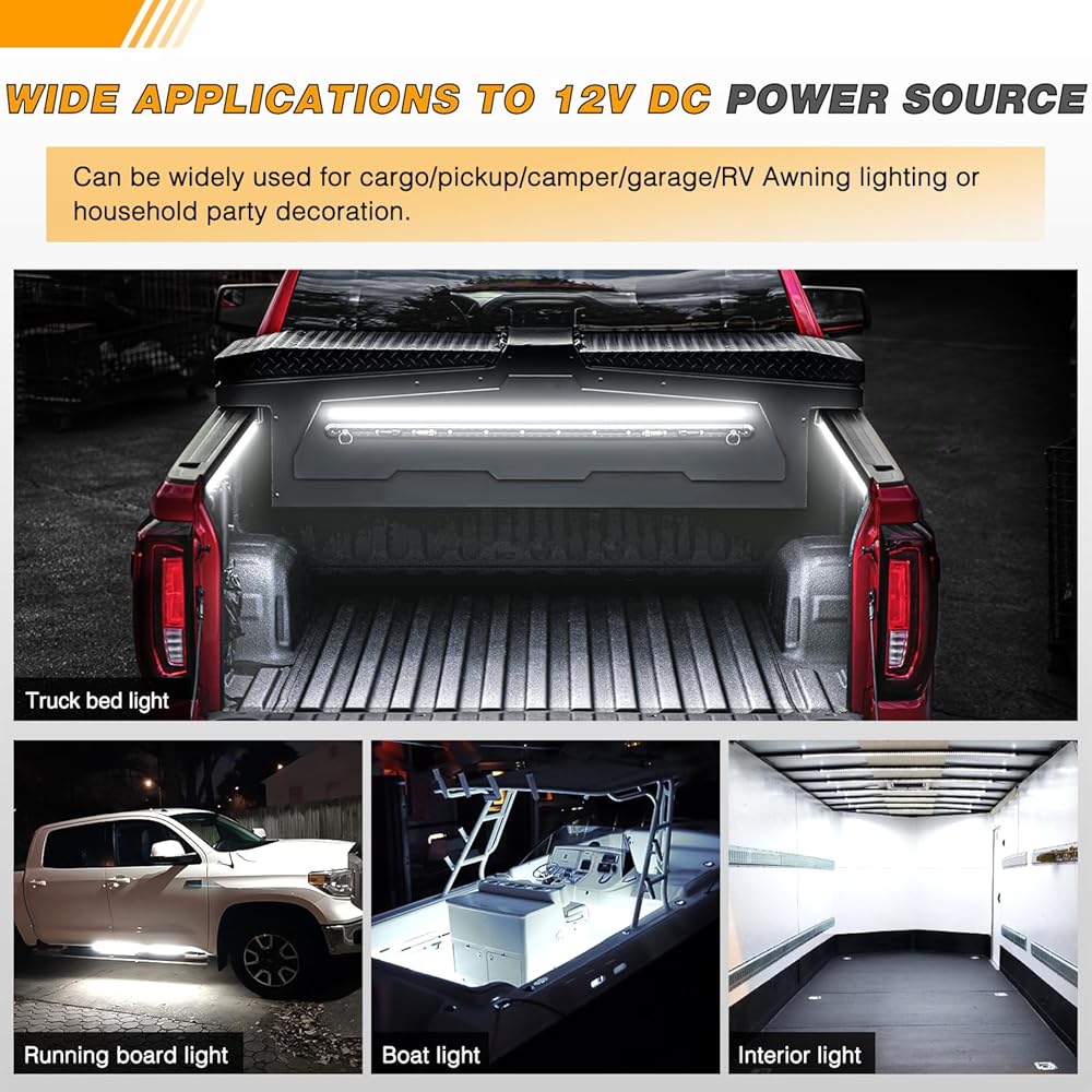 Wide Applications: This light strip is compatible with any vehicle that has a 12v power supply, including trucks, pickups, cargo trailers, campers, boats, and RVs. It can also be used for awning lights, pedal LED lighting, and various interior and exterior applications. 2 Years warranty honored by GOOACC