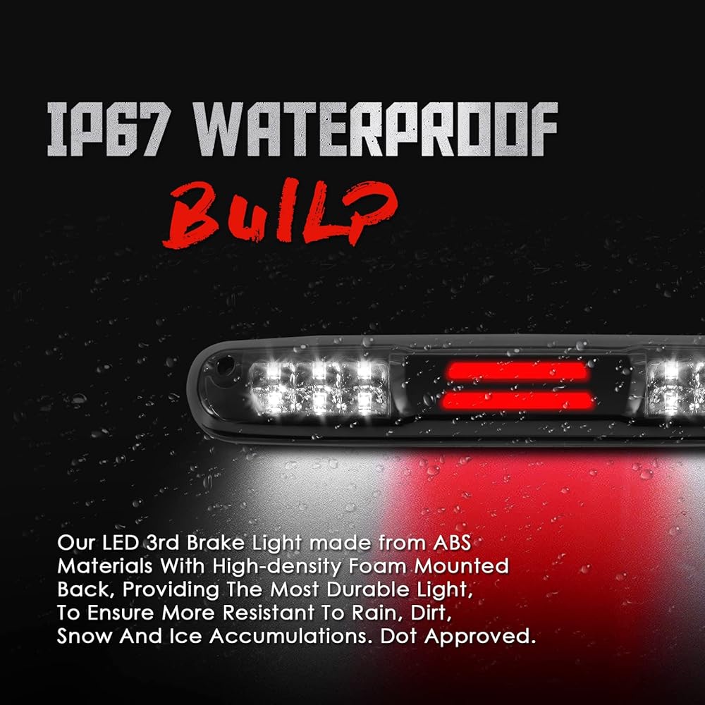 【Waterproof】: Ready to take on any kind of weather. This LED 3rd Brake Light made from ABS materials with high-density foam mounted back, providing the most durable light, to ensure more resistant to rain, dirt, snow and ice accumulations.