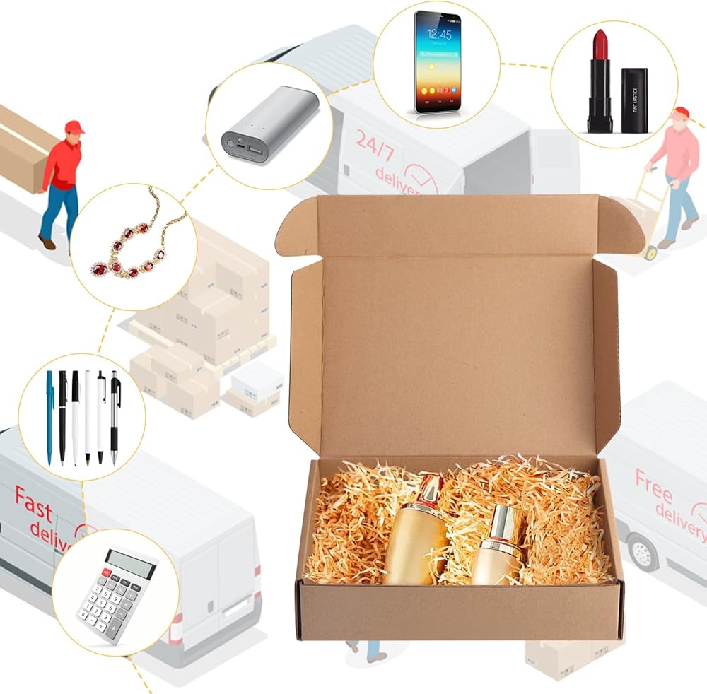 Material:9x6x2 shipping boxes Made of recyclable cardboard. They are environmentally friendly, shipping boxes for small business lightweight and durable, and can safely protect the items being shipped.
