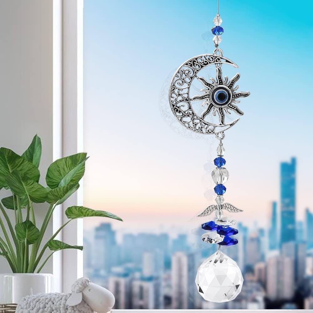 The decorative talisman is the most widely used evil eye beads. This product combines the devil's eye with the guardian angel These designer charms have dual purpose- they can be used as a blessing ornament or as a window hanging accessory.