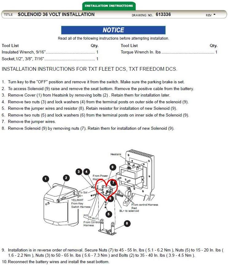 Easy to install: Acts as the conduit between the golf car battery and starter generator, copper alloy contact terminals insulated base w/steel housing. Make sure your small diode is in the correct direction with the line pointing to the positive side;