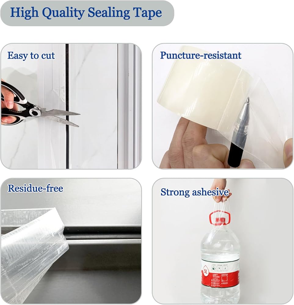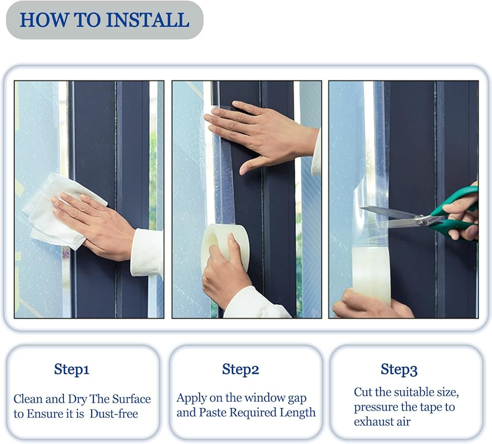 Strong and sticky , easy to cut and stretchable weather proofing tape , thick and durable for sealing and blocking drafts.