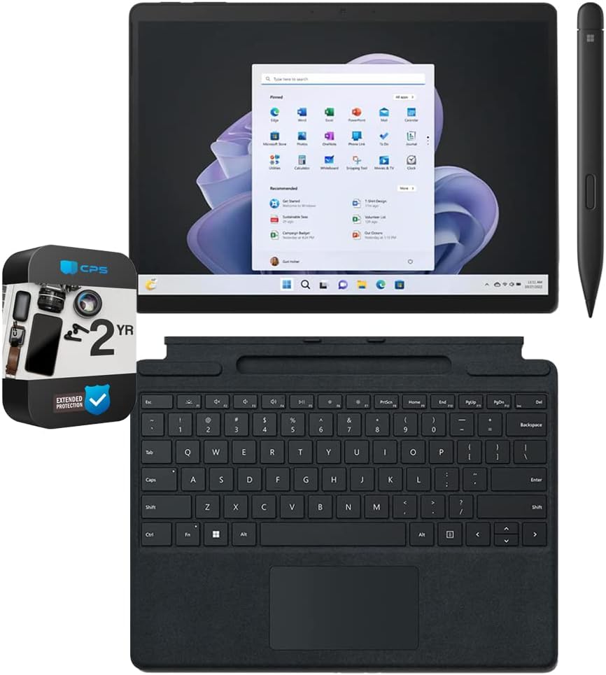 BUNDLE INCLUDES: Microsoft Surface Pro 9 13" Touch Tablet, Intel i7, 16GB/512GB, Platinum (QIX-00001) | Microsoft Surface Pro Signature Mechanical Keyboard - Black (8XA-00001) | Microsoft Surface Slim Pen 2, Matte Black