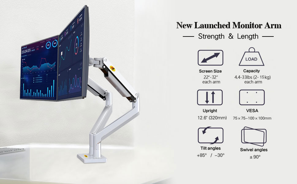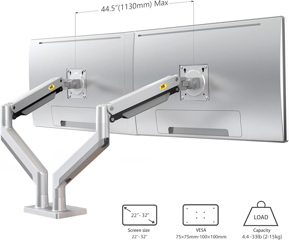 NB North Bayou Dual Monitor Arm Ultra Wide Full Motion Swivel Monitor Mount with Gas Spring for 22''-32'' Monitors with Load Capacity from 4.4 to 33lbs for Each Arm Monitor Stand G32-S