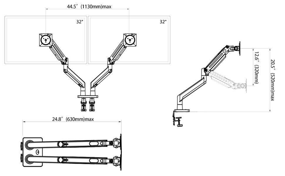 ① UNIVERSAL: Fits LCD, LED flat screen TV or monitors from 22'' to 32'' in size with the load from 4.4 lbs up to 33 lbs for each arm, VESA is compatible with both 75*75 mm and 100*100 mm.