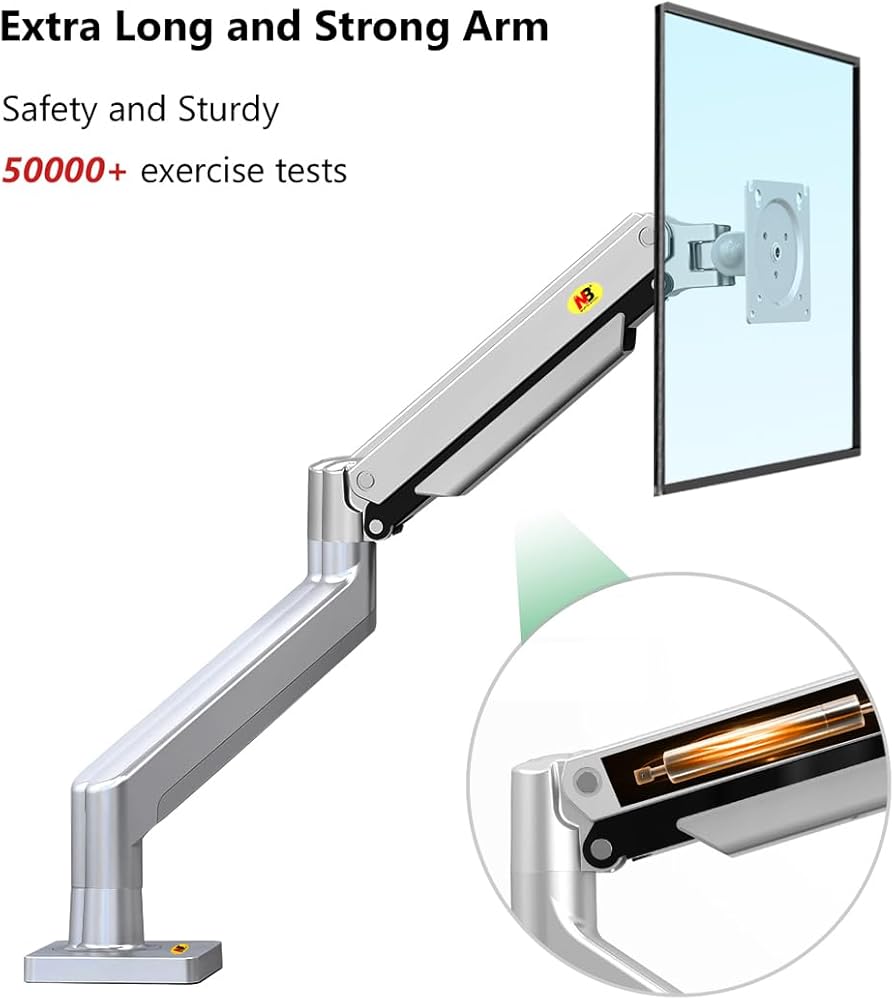 ② FULLY ADJUSTABLE: The durable gas spring system ensure easy positioning of your monitor in any desirable position; Personalize your workstation any way you want; Support C-clamp or Grommet installation; Heavy-duty construction and super quality materials keep your arm mount stable- This is the sturdiest desk mount on the market.