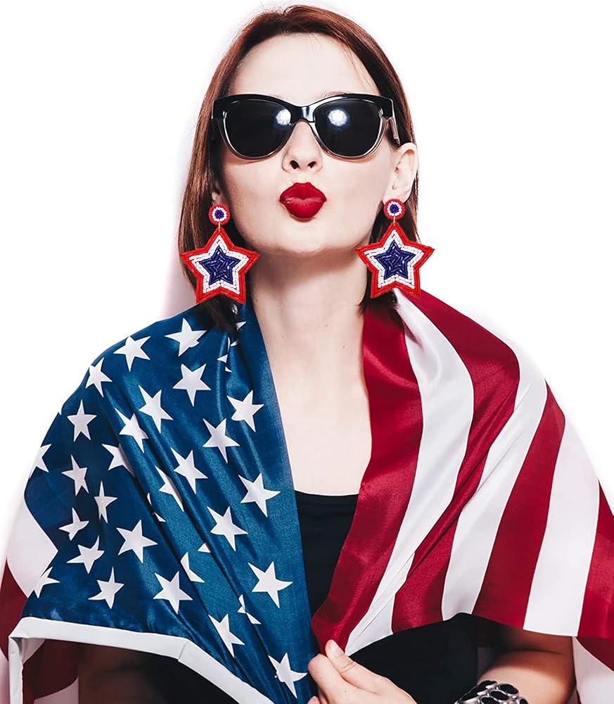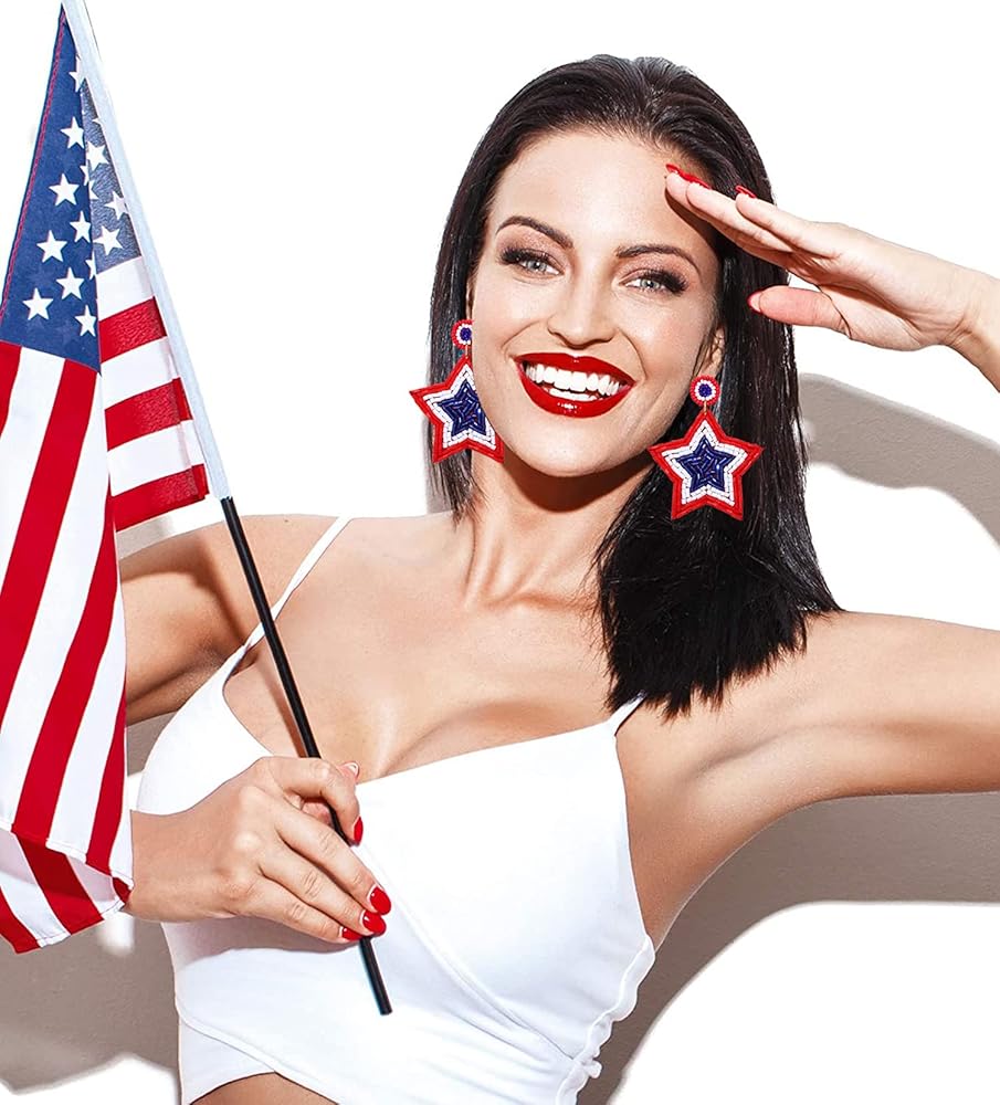 Waving American Flag with wear this cute USA star beaded earrings help you display your patriotic pride wherever you go, Wear them with all your favorite summer outfits. They dress up a plain or patriotic t-shirt but will also look cute with a dress or skirt. These patriotic star dangly earrings are super lightweight and comfortable to wear all day long. Get ready to have all your friends, family and even strangers compliment you on these earrings every time you wear them.