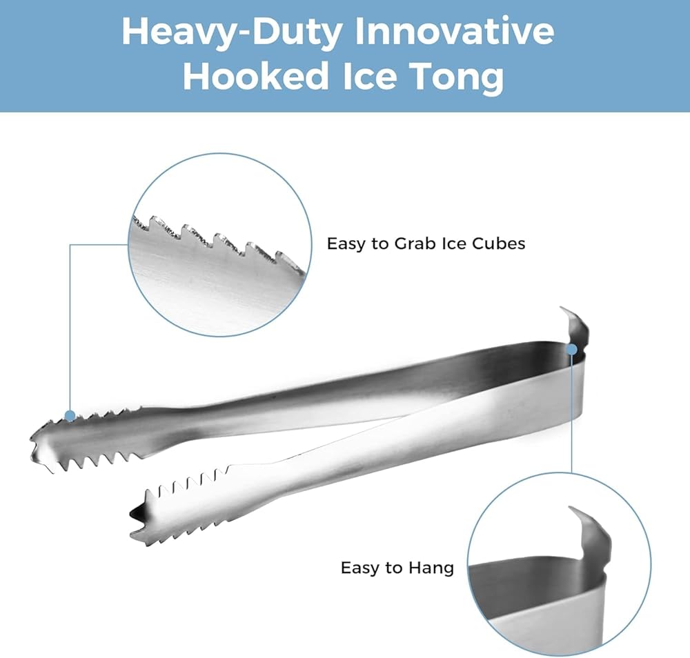 User-friendly Innovative Design: Stainless steel tong for ice bucket features sharp teeth for extra grip; easily pick up ice cubes and carefully transfer to your drinks without messy slips and splatters. Innovative hooked ice tong securely hooks onto the wine bucket when not in use. Removable strainer sits stably in the bottom separating ice cubes from melted water. The knob handled lid makes it a breeze to open and put back in place.