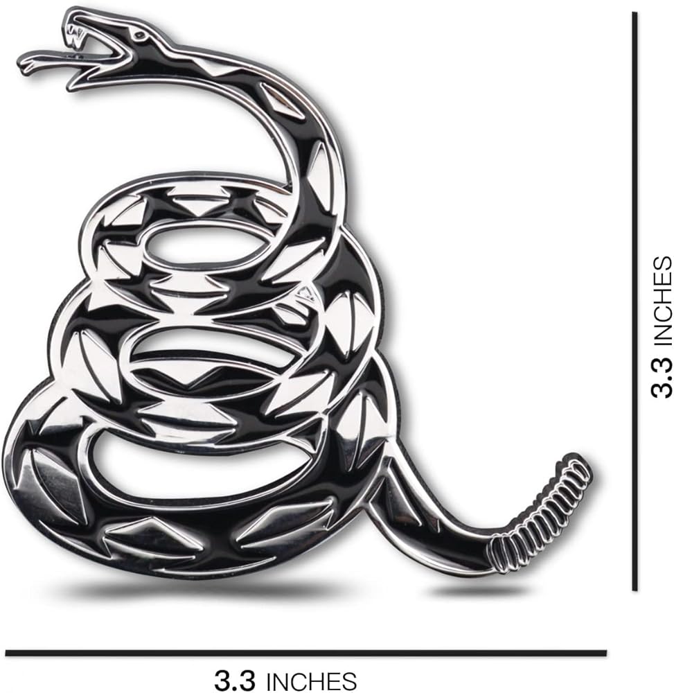 Design: Our don't tread on me snake emblems are designed in 3D with simplified lines and are very recognisable, perfect for putting on a car or as a home decoration etc.
