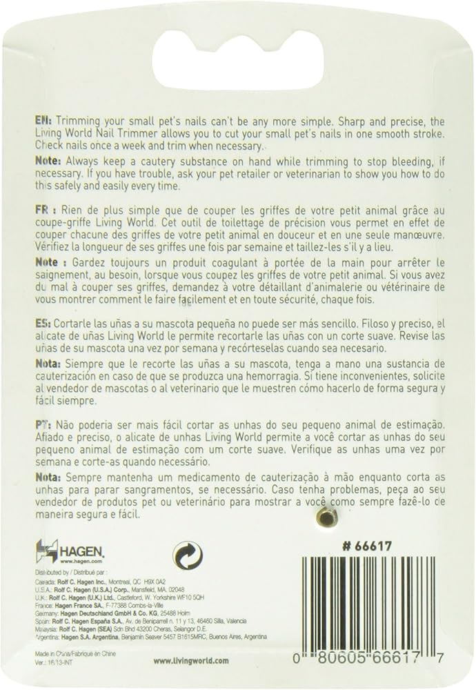 Trimming your small pet's nails can't be any more simple. Sharp and precise, the Living World Nail Trimmer allows you to cut your small pet's nails in one smooth stroke. Check nails once a week and trim when necessary. Perfectly sized for rabbits, guinea pigs and ferrets.