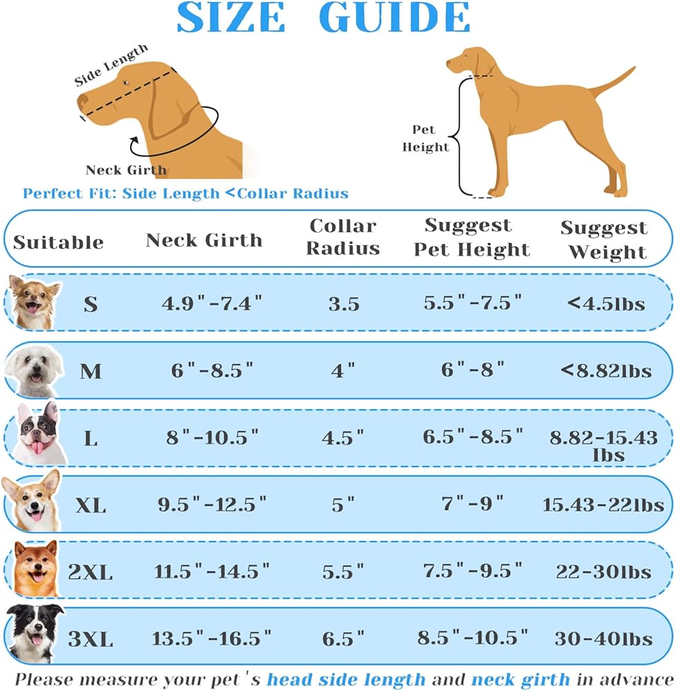 【COMFORTABLE CONES FOR DOGS】Our cone of shame for dogs is light and soft, filled with high-elastic PP cotton, ensuring sufficient comfort. In addition, the neckline of this medium dog cone is made of skin-friendly fabric, which does not rub the skin, full comfort of dog head cone can help pets to recover easily.