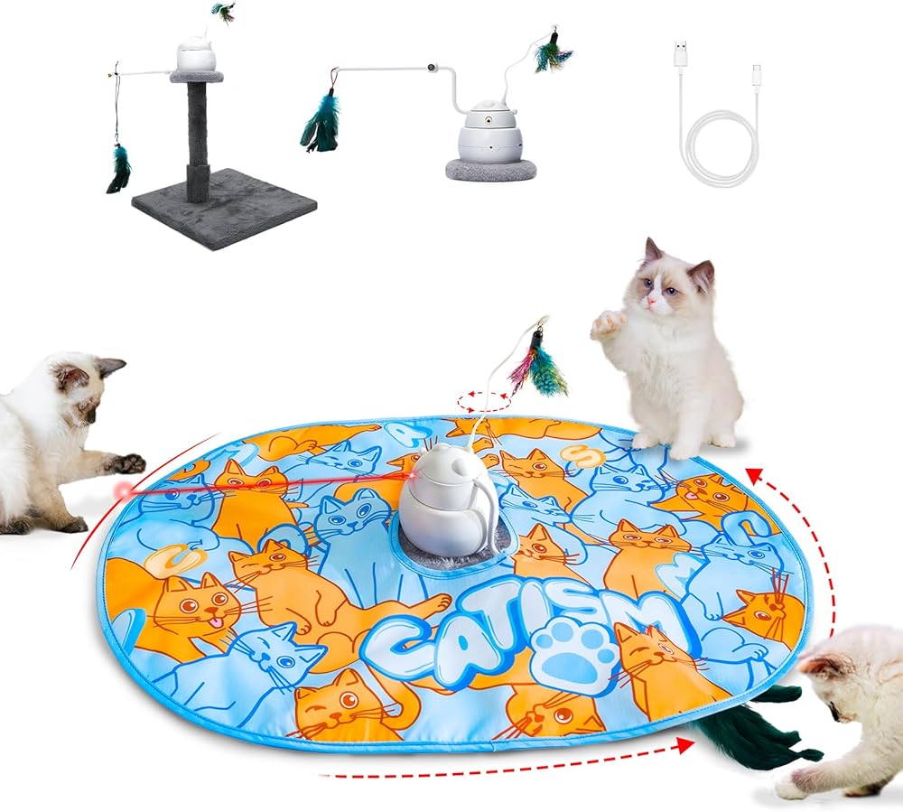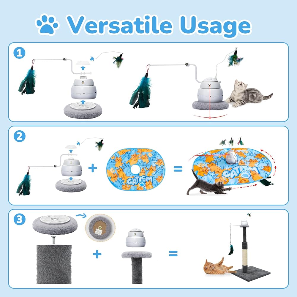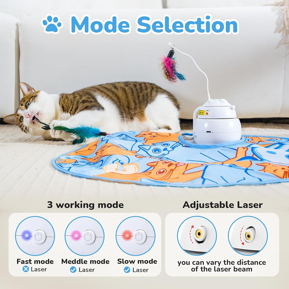 ✅【Multifunctional Indoor Exercise Toys】2024 new 4in1 smart automatic cat toy include hide and seek; feather spring; light pointer multiple game modes, train cat's brain while encouraging them to exercise. It not only maintain a healthy weight, but also help them get rid of loneliness to keep a happy mood. Believe your little cutie will love it!