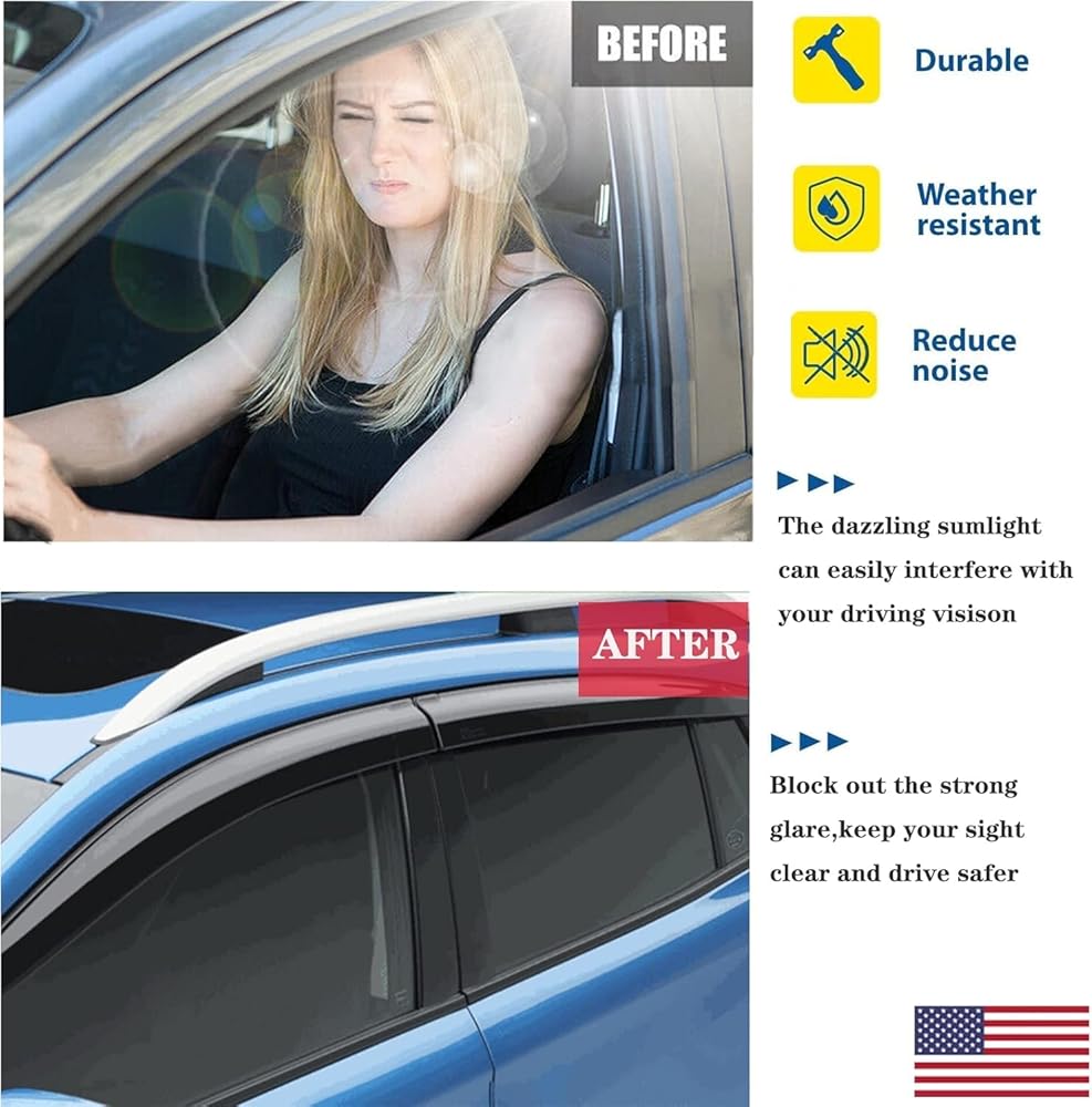 ✔️Package Content - 4 pcs Window visors (2 Front & 2 Rear). High quality acrylic plastic With double-sided adhesive tape.