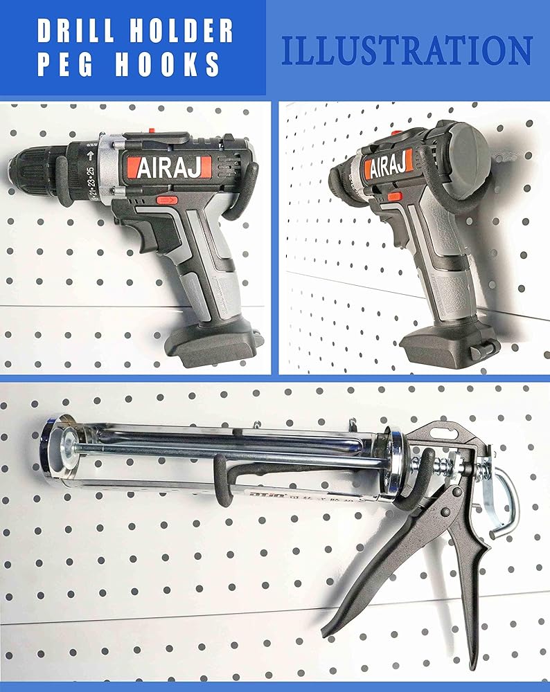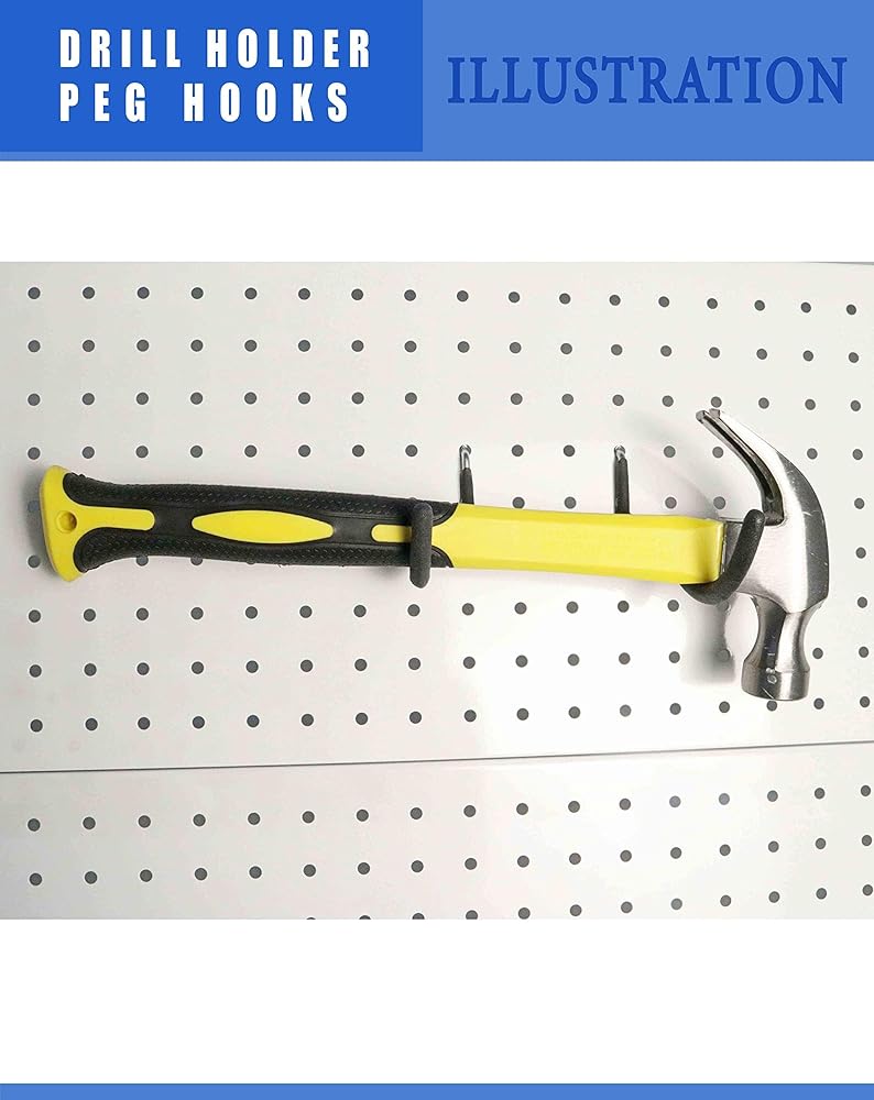 [PREMIUM CUSTOMER SERVICE] Package includes 6 packs of drill holder pegboard hook If any of the items are missing or received package is damaged, report to us and we will happy to make an exchange or refund. With any dissatisfaction, we provide free return policy and Money back guarantee.
