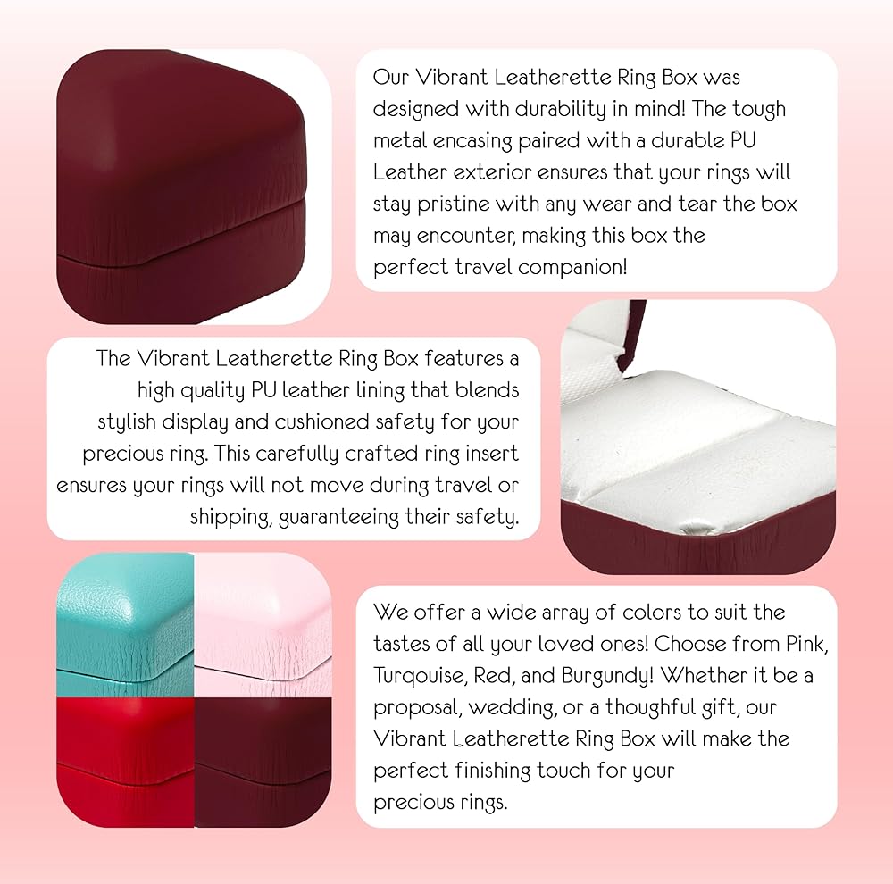 Stylish and Modern: Available in Pink, Turquoise, Red, and Burgundy, our ring box is Designed to appeal to women, girls, teens, and individuals of all ages, making it a perfect choice for any recipient.