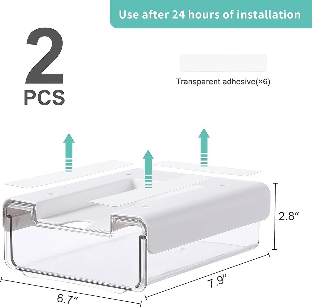 👍【What you get】: Each set includes four self-adhesive desk drawer slides and 6 self-developed premium acrylic adhesives. We recommend using three sheets of adhesive under each desk drawer, and desk Organizers measuring 7.9 "X 6.7" X 2.8 "H.