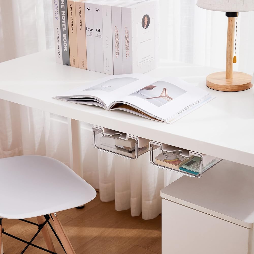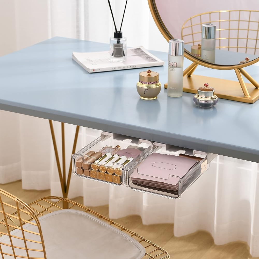👍【Goodbye to Clutter】: The under desk drawers allow you to use gaps and dead space under tables and shelves to increase storage space on your desk. Ideal for a variety of settings such as offices, kitchens, living rooms, bedrooms, and study rooms. Help you free up more office space. Keep your desk neat and tidy and bring you a comfortable working experience.