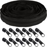 FEATURES Bi-directional coil style teeth. Zipper tape is continuous and separating. Stretchy yet durable. Very flexible, which works well around curves, and with overstuffed bags etc. Easy to sew on. Cut to desired length. Pull slider is a lightweight material. No internal locking mechanism, making it easy to pull apart