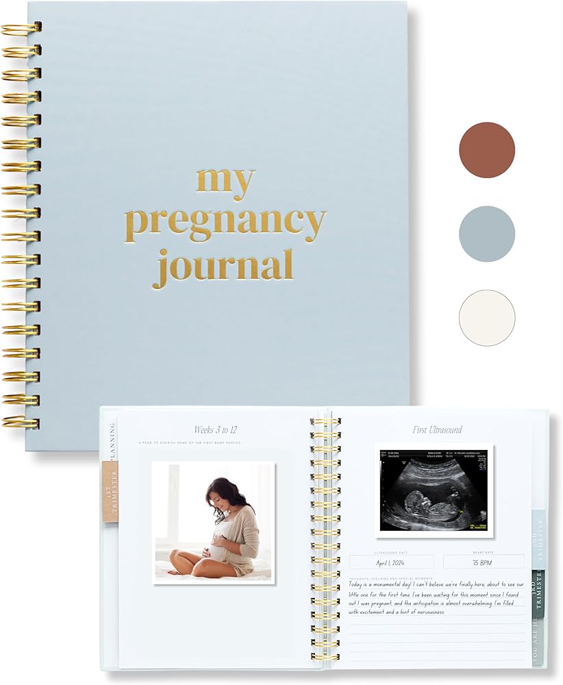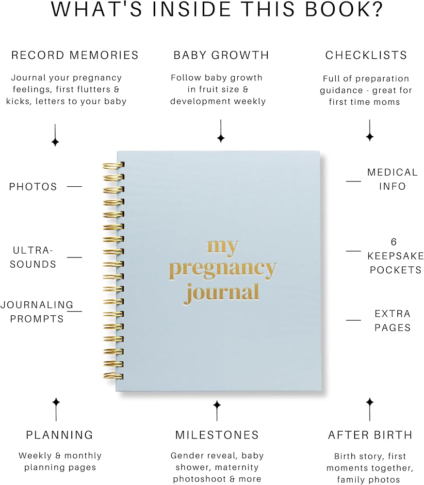• Say hello to your ultimate organizer! Our pregnancy memory book is smartly designed with weekly pregnancy calendar planners, checklists, birth plan guides, and even space for medical info and appointments. It's your go-to for staying on top of every trimester – surely one of the must have baby journals for first time moms and congrats on pregnancy gift!