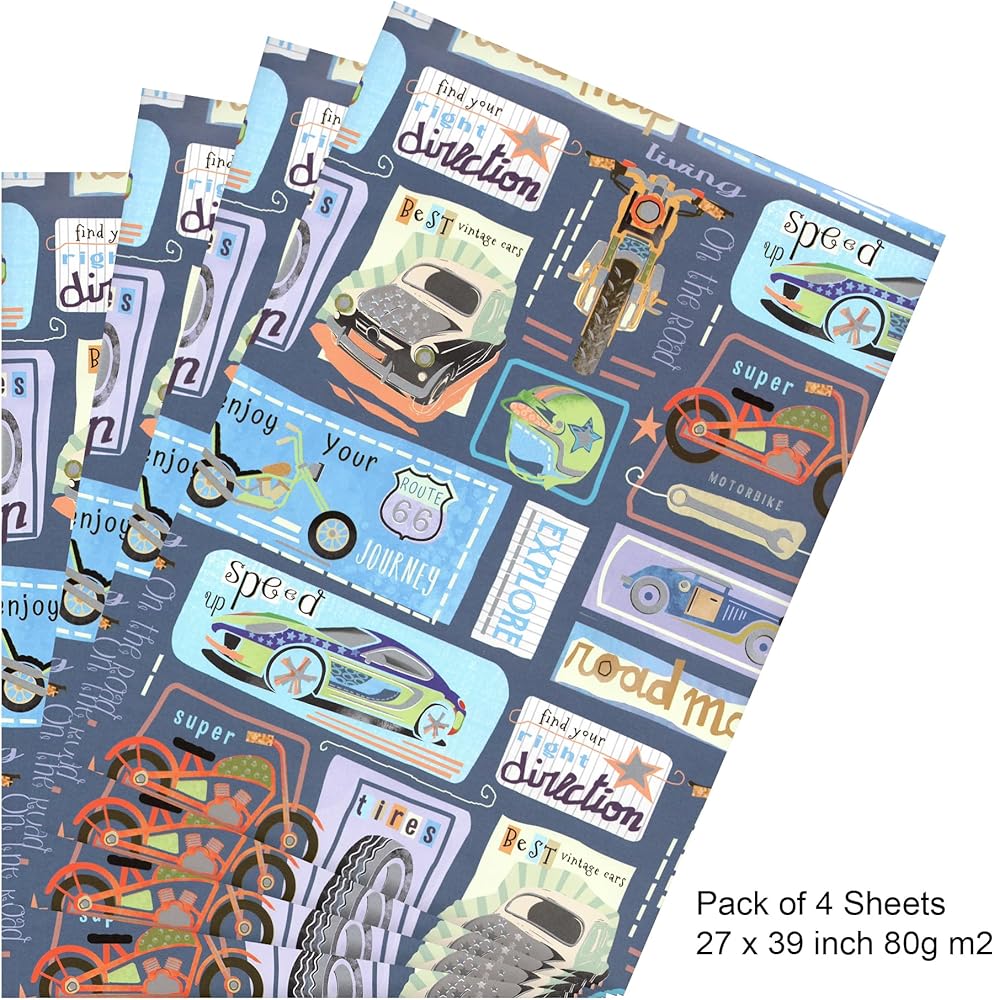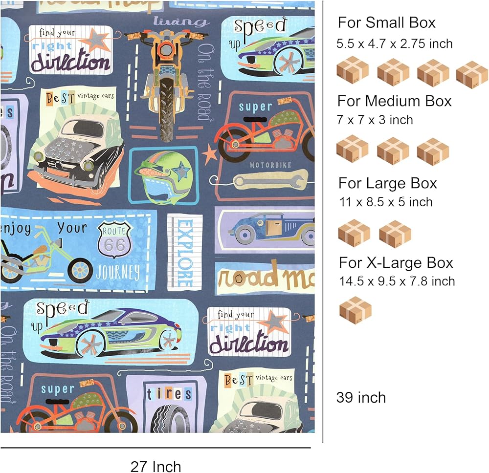 - 4 BIG FOLDED SHEETS: Flat wrapping paper bundle includes 4 sheets of gift wrap, each measuring 39" by 27" folded easy storage