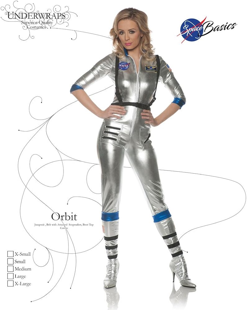 You'll look out of this world in this Women's stretch jumpsuit astronaut costume. This costume is ideal for stage performances, group costume events, Halloween, costume themed parties, and any costume event.