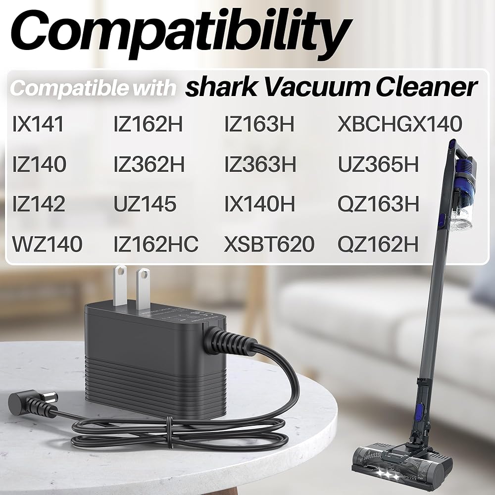 【Compatibility】The DC 24.8V charger for Shark vacuum cleaner DK33-248080H-U, fits for Shark Rocket Pro vacuum charger cord compatibles with Shark IZ531H IZ530 IZ500 UZ565H IZ563H IZ562H IZ560 IZ530 IZ540 IZ540H IZ541H IZ162H IZ163H QZ162H QZ163H IZ140 IZ140C IZ142 IZ163 UZ145 WZ140 ; fits for Shark UZ365H IZ361H IZ362H IZ363HT cordless handheld vacuum ac adapter for Shark Rocket cordless stick vacuum IX140, fits for Shark IX141 pet cordless stick vacuum; This cordless vacuum charger ONLY use to charge for shark cordless vacuum charger XBCHGX140 21.6V 1900mAh XSBT600 XSBT620 Li-ion battery pack
