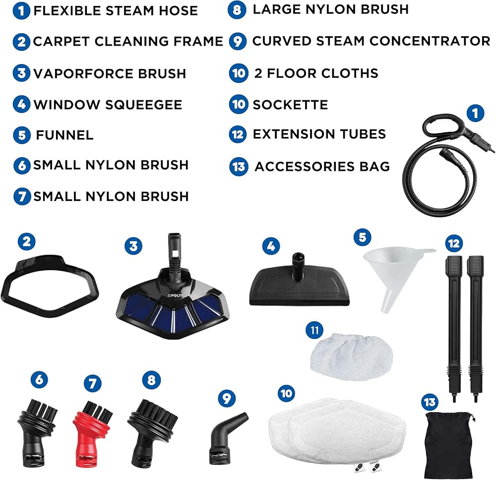 ALL-IN-ONE FLOOR AND PORTABLE HANDHELD CLEANING: Our POLTI Smart Mop offers multiple features including 12 multi-purpose attachments that allow you to sanitize multiple flooring, including carpets & rugs, windows and more. Our 5-channel swivel mop head with integrated brush and extended 2-ply microfiber pad, deep cleans flooring. Our included carpet glider can be used for deodorizing, renewing and refreshing carpets. Choose from continuous steam flow or on-demand pulse steam