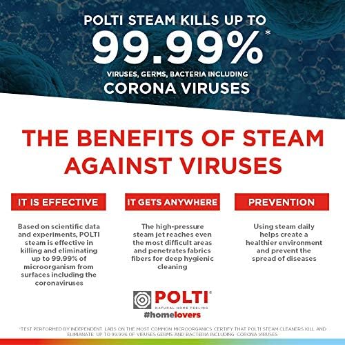 CHEMICAL FREE CLEANING: Say goodbye to harsh chemicals and hello to the power of pressurized sanitizing steam with the POLTI Steam Cleaner. It offers a chemical-free cleaning alternative that is not only effective but also promotes a safer and healthier living environment.