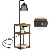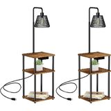 Floor Lamp with Table,Foor Lamp with Shelves,Side Table with USB Charging Port and Outlet,Modern Bedside Nightstand End Table with Lamp for Living Room,Bedroom,Guest Room,Bulb Included