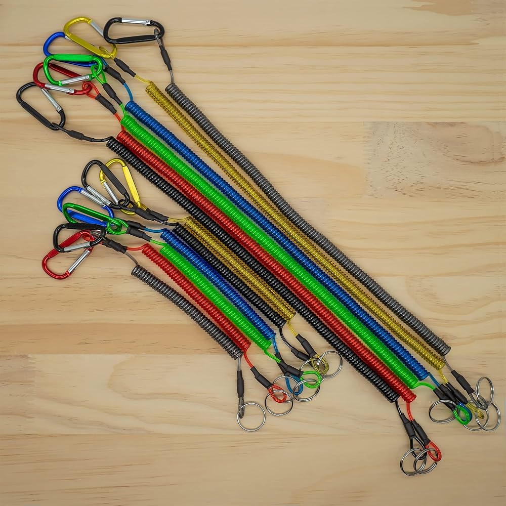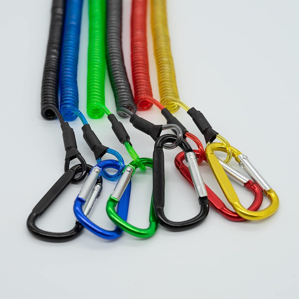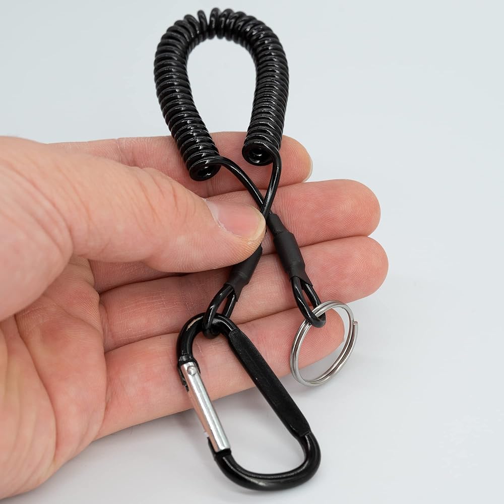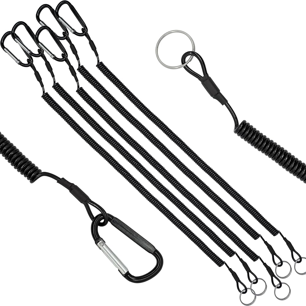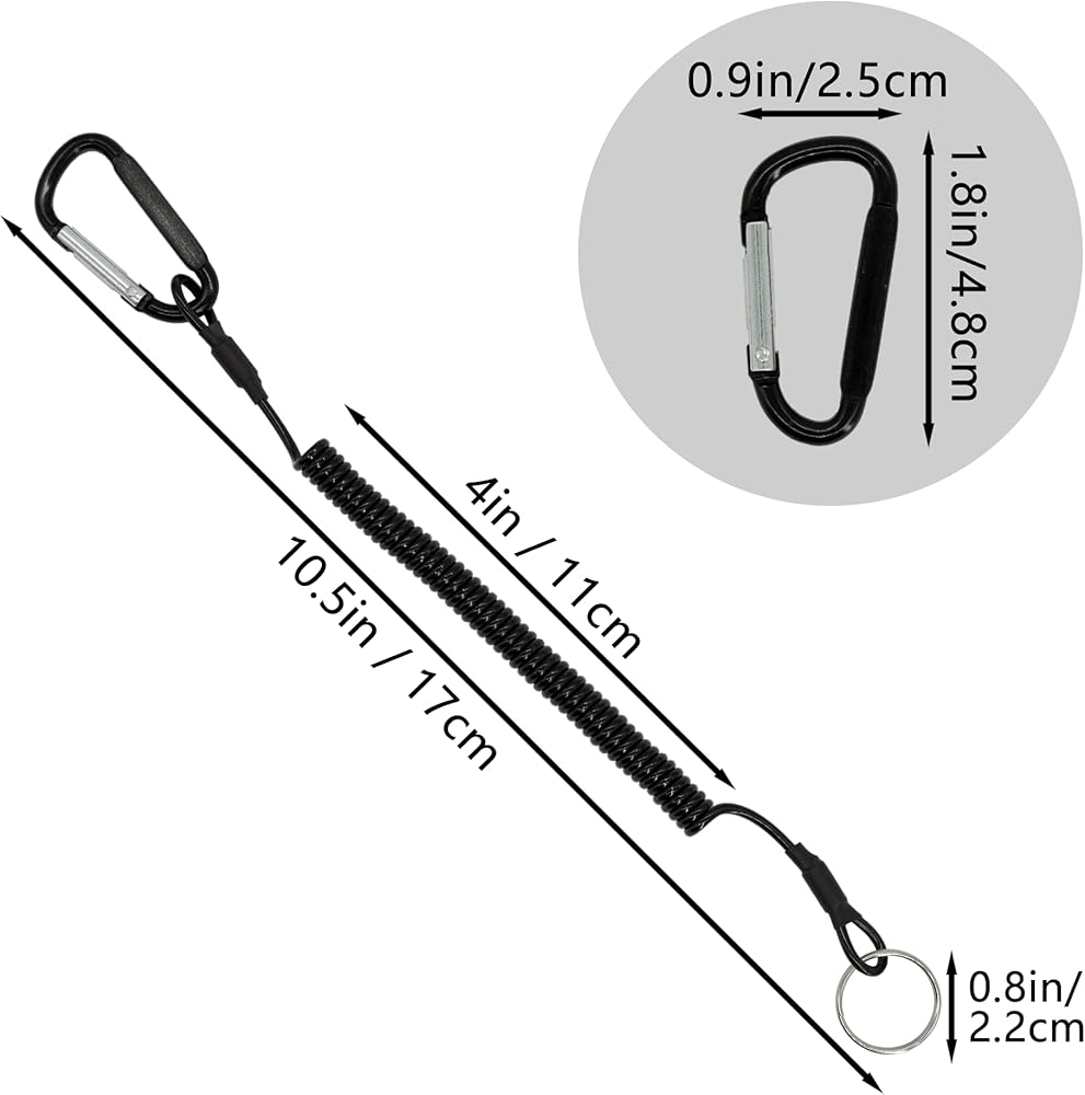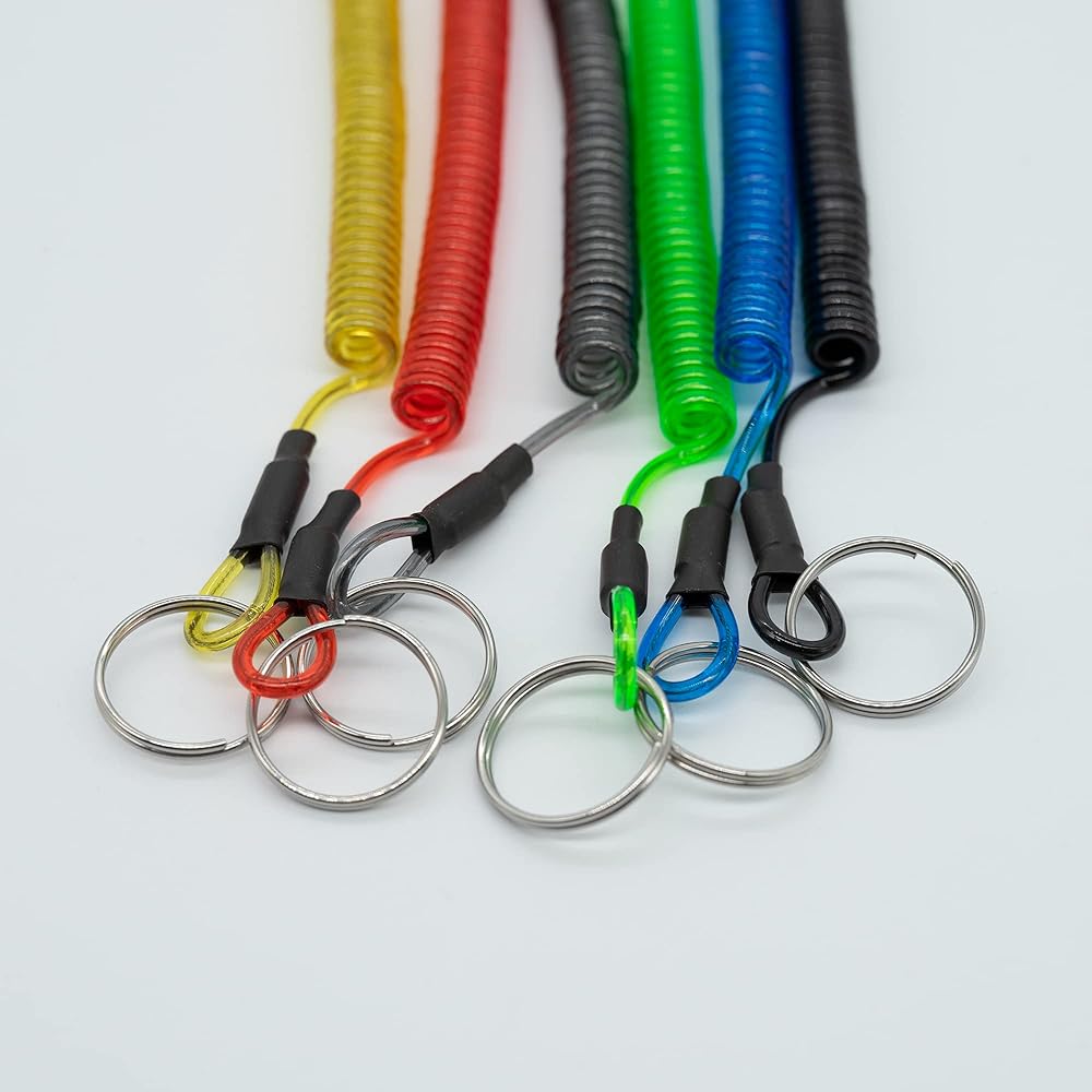 StayMax Stretchy Spiral Keyring Spiral Lanyard Retractable Coil Spring Keychain Anti-Lost Stretch Cord with Carabiner (5 Pack, 11 Inch, Black)