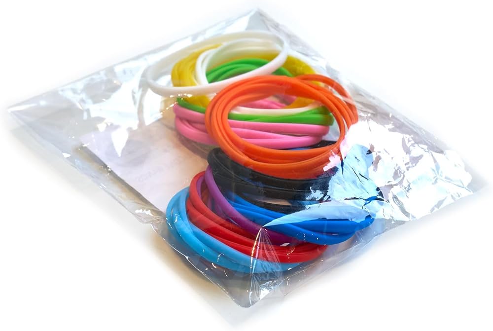 THE ULTIMATE PACK: Awesome 40-units pack of long lasting 1/8 inch wide silicone Band Jose rubber bands. Thin profile wrist bands and silicone cooking bands. These high-quality silicone bands are great for house, office and school projects.