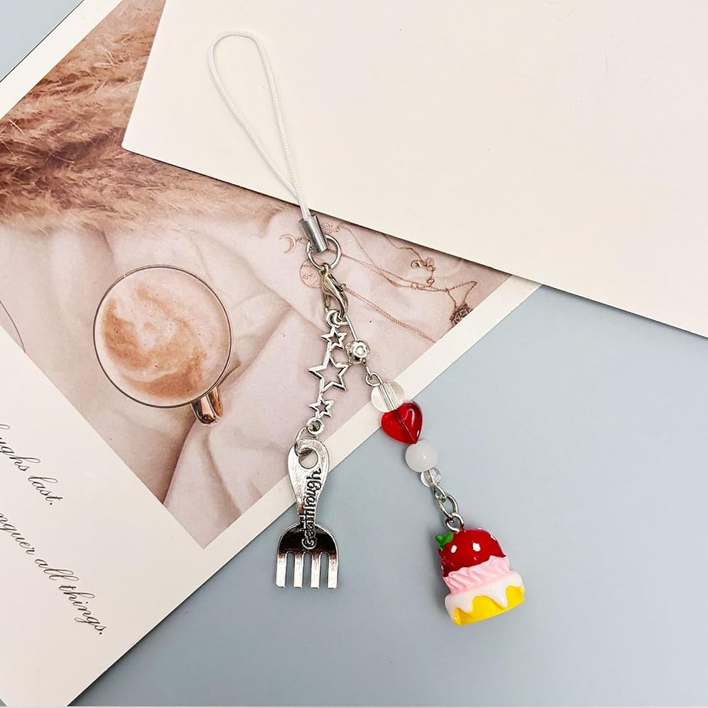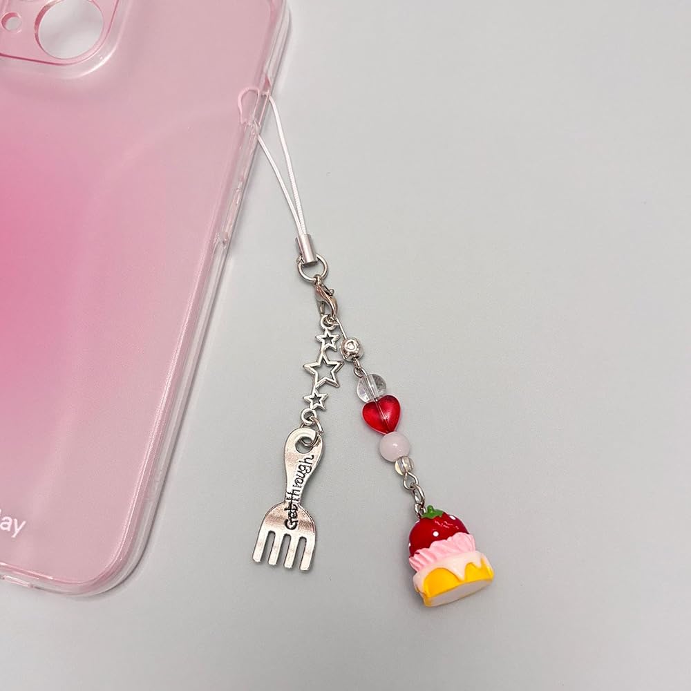 Unique Y2K Design:The cute Y2K phone charm have red strawberry/pink bear/cake/cookie/doughnut/ice cream/fork/spoon/crystal/beads/heart/star etc. pendant design, and the size is just right. These cute cell phone charms make your cell phone look different and beautiful.