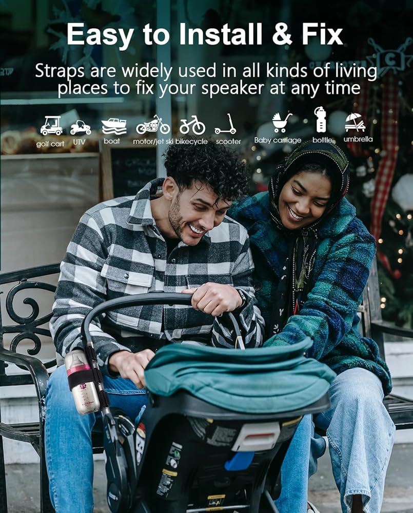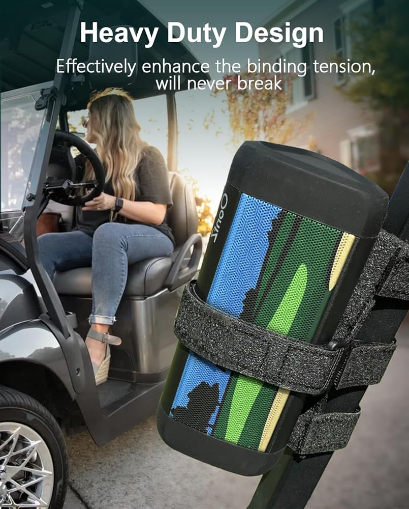 【تركيب مكبر الصوت الخاص بك بشكل آمن】3 أشرطة قابلة للتعديل وحزام سفلي فريد يحمل مكبر الصوت اللاسلكي الذي يعمل بتقنية البلوتوث (محيط 8 بوصة - 12 بوصة) في مكانه بإحكام على قضبان محيطية 5 بوصة - 7 بوصة، مثل عربات الجولف والدراجات والقوارب والمزيد .