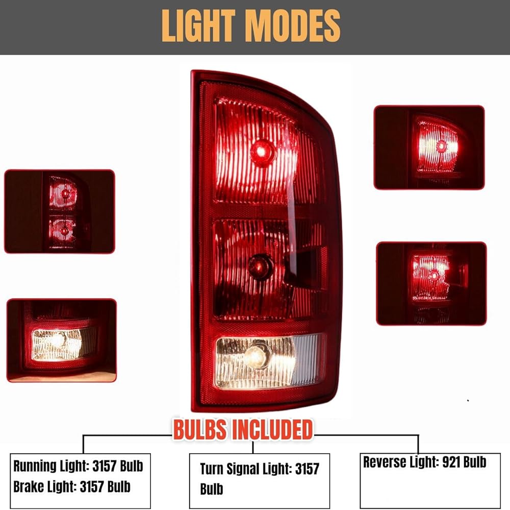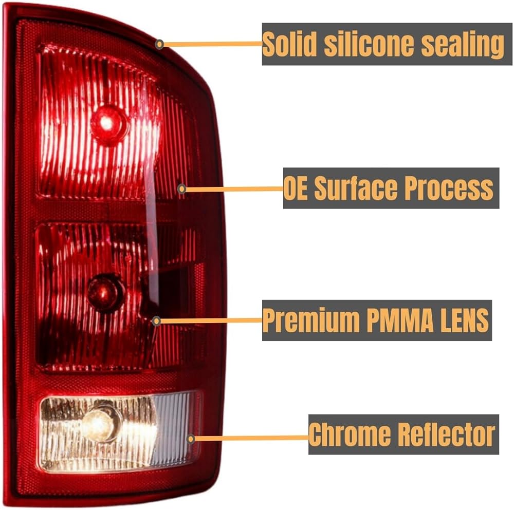 Tail Light Compatible with 2002-2006 Dodge Ram 1500 2500 3500 Pickup truck rear Brake Lamp with Circuit Board (Passenger Side)