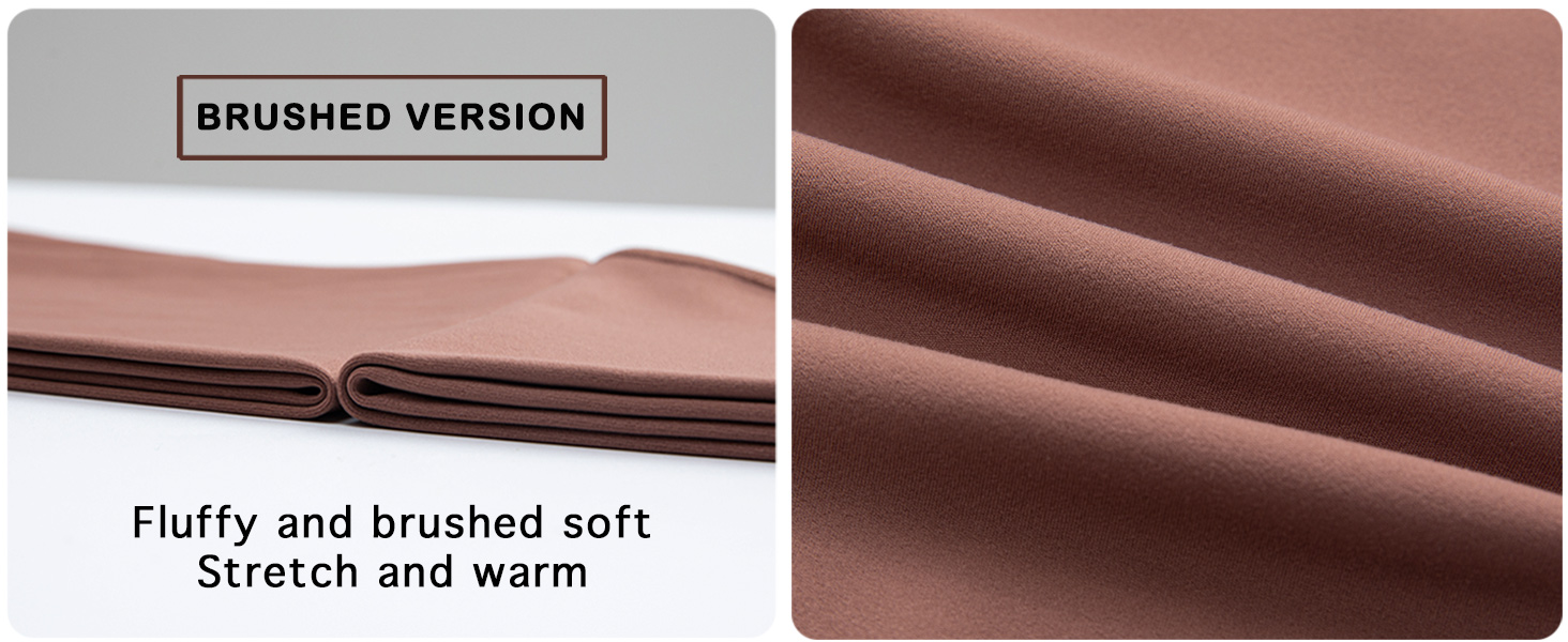 - Feel: Fluffy and brushed soft, 4-way stretch and warm