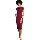 Transition from the office to after hours in the Lainey. This figure-hugging, body-con midi dress features pleated details that bring texture to the bodice, cap sleeves for a feminine touch, and a slit at the back for easy movement.