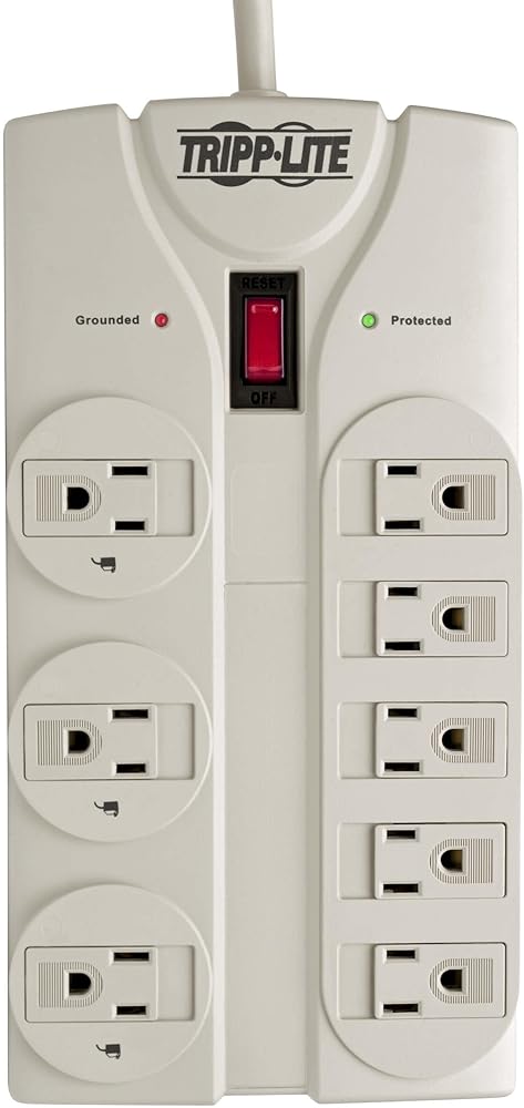 Tripp Lite's TLP825 offers Complete AC surge suppression for comprehensive system protection of workstations, desktop PCs, telecom systems and other sensitive electronics. Heavy grade AC surge suppression shields connected equipment from damage and performance problems due to the heaviest transient surges. TLP825 offers 8 total outlets, 25 foot cord with space saving angled plug and diagnostic LEDs to warn of wiring problems and suppressor damage. Network grade AC suppression rated at 1900 joules shields equipment from surges and line noise. Integrated child safety outlet covers safely seal off unused outlets. Attractive white housing with keyhole mounting slots and 3 designated transformer plug outlets offers convenient protection of desktop computer equipment and accessories. Lifetime warranty with $75,000 connected equipment Insurance (USA, Puerto Rico & Canada Only).