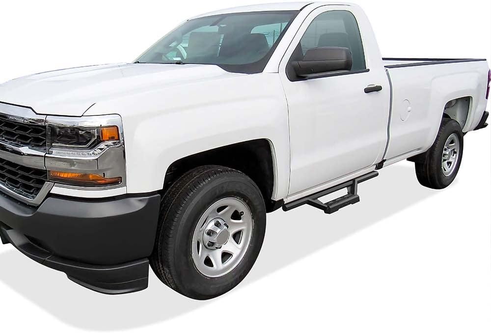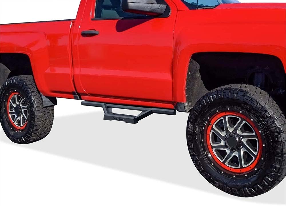 Made of Stainless Steel square tube and drop step pads, triple-layer black powder coated finish for aggressive tough look.