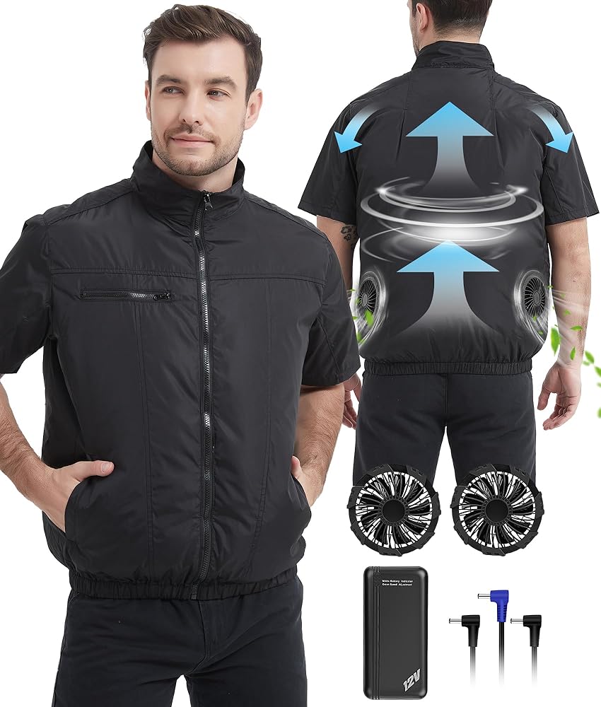 Included with 12V Battery: Foiueyga fan vest with including 20000mAh battery pack. High power, Large capacity. A Specific Battery ensures the fan of the cooling vest is high-performance and high-efficiency, longer battery using time, safe charge and less power consumption. When in high mode, the electric fan vest long time working 12 hours.