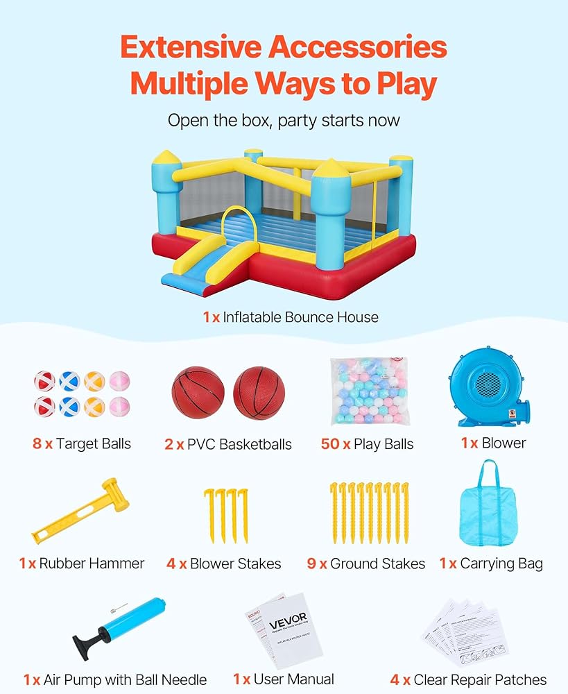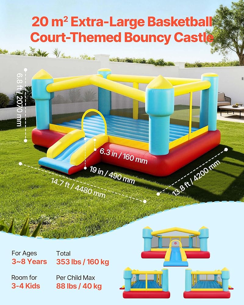 VEVOR Inflatable Bounce House, 14.7 x 13.8 x 6.8 ft Jumping Bouncy Castle, Inflatable Jumper for Kids with Slide, Basketball Hoop, Target Game & Jumping Area, Jumpings House Holds 3-4 Kids (Ages 3-8)