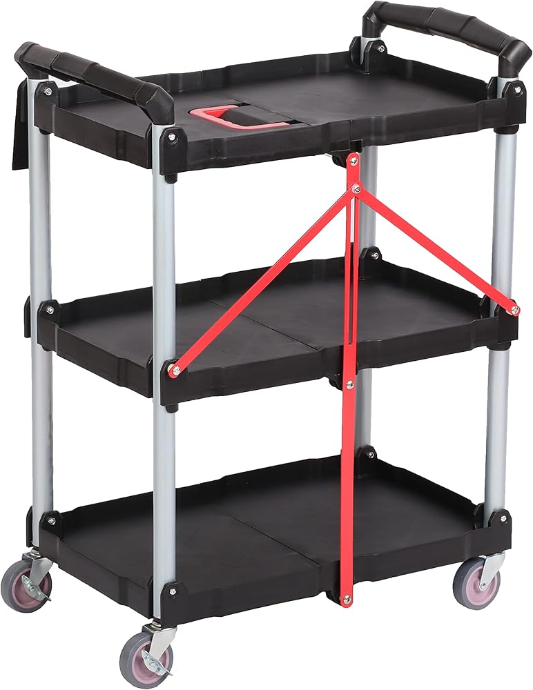 【Foldable】The 3 Tier Push Cart is Collapsible, which can be put in car trunk or at the back of the bike and take it to anywhere you want without taking up the space.