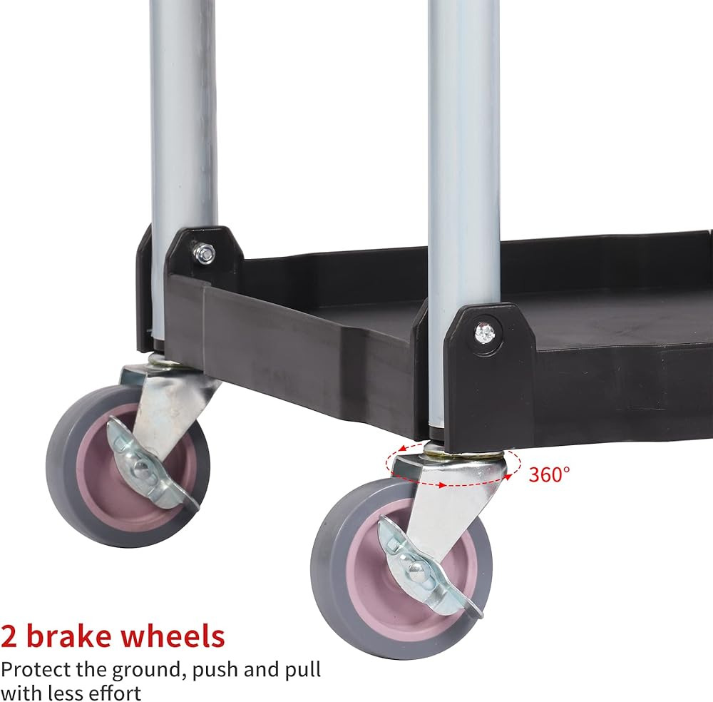 【Mobile Convenient】360 ° rotation of the wheels allows the cart to go anywhere you want, with two wheels equipped with locking function to keep the cart stable.