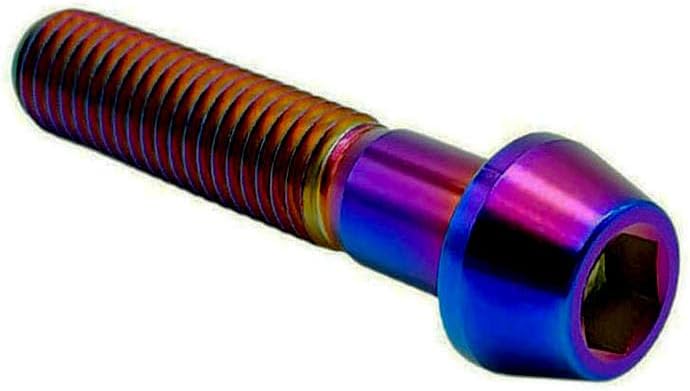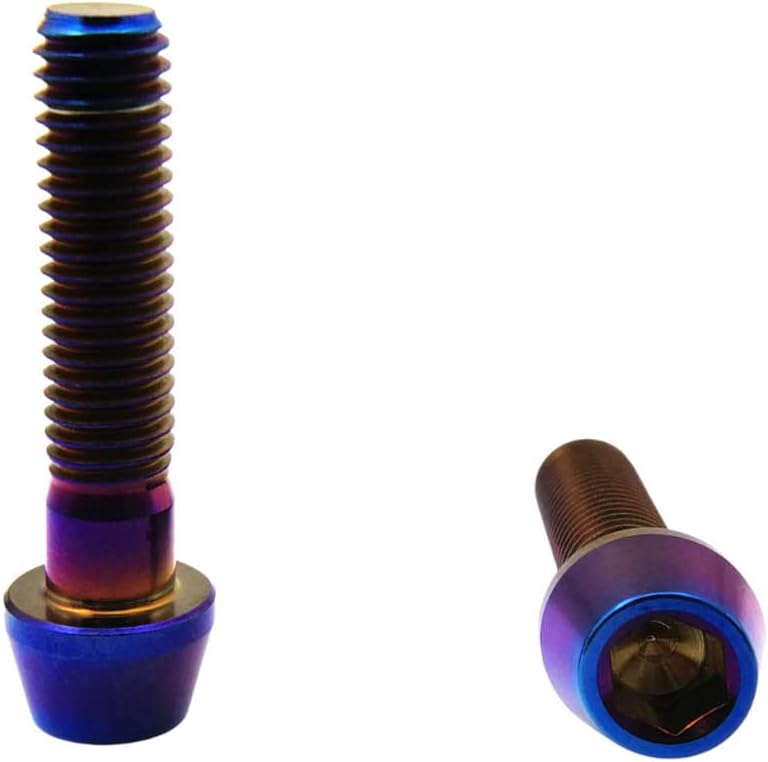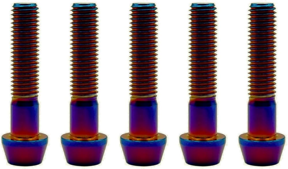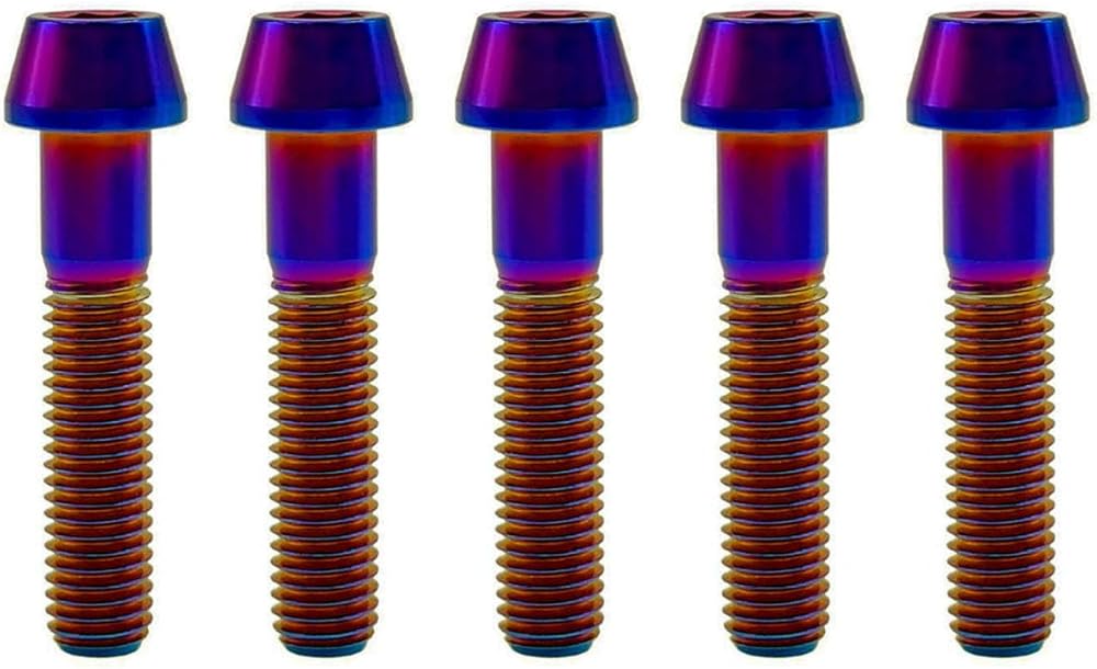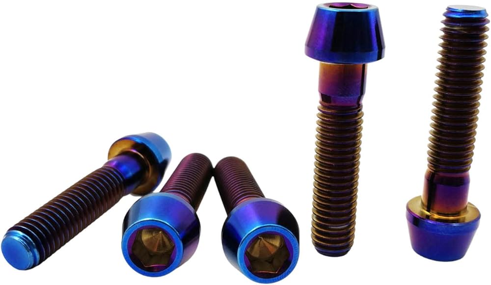RISON Titanium Bolts Ti Bolt M8*1.25*15 20 25 30 35 40mm Hex Tapered Socket Head 5Pcs Burnt Blue/Red/Original/Gold/Black Titanium Hex Tapered Head Bolt Screw for Bike stem