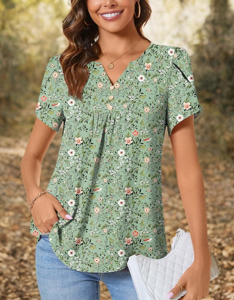 Feature: Women's petal short sleeve tops, cute v-neck design, good wear resistance, less prone to pilling and wrinkles, comfortable yet elegant.