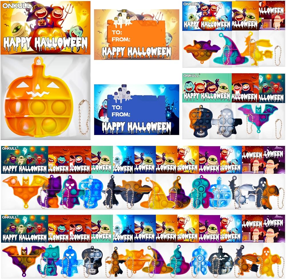 🎃HUGE QUANTITY: This Halloween party favor includes: 24 Halloween Pop KeychainsAnd 24 colorful Halloween cards! enough for you to hand out to all your friends!