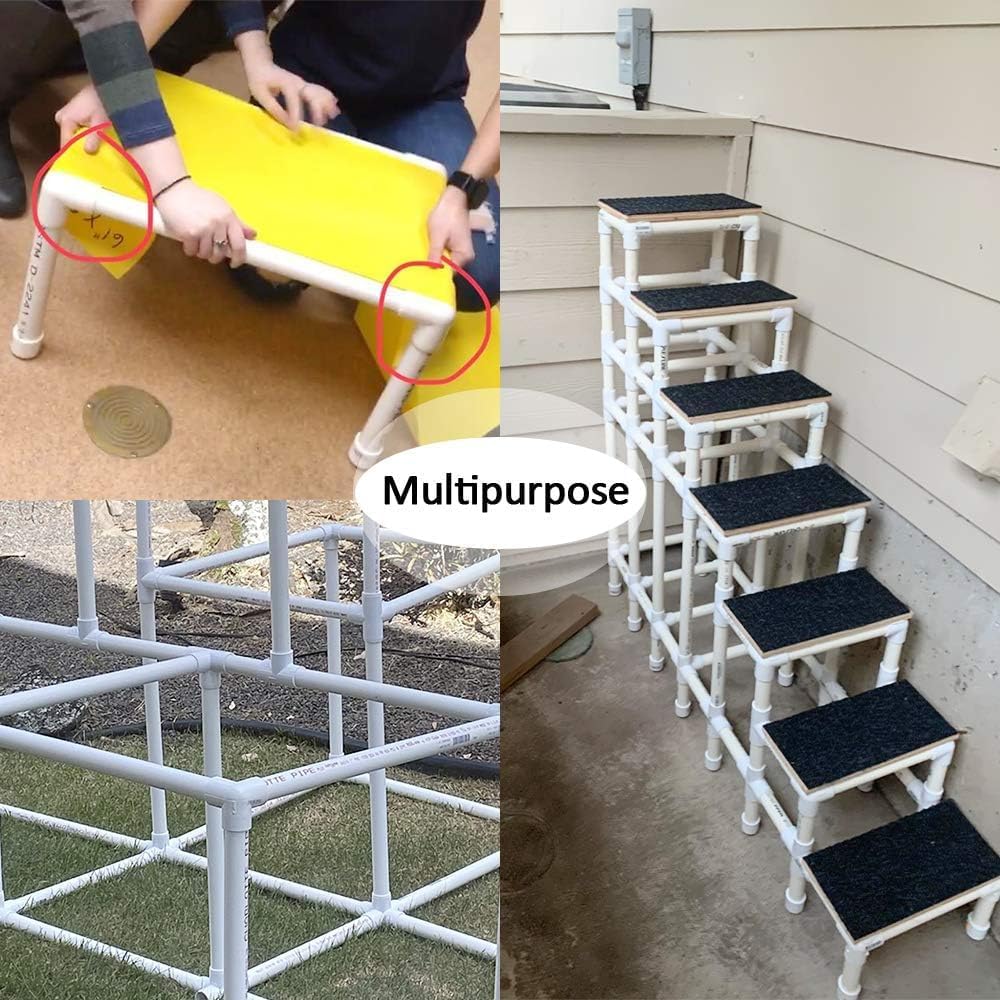 Wide Applications: 4-way 1/2 inch PVC pipe fittings are components used to connect control flow terminate or change the direction of pipes such as tent connections chairs desks cat enclosures storage shelves greenhouses DIY PVC structures and projects. These furniture fittings are suit for edge corner and center connections.