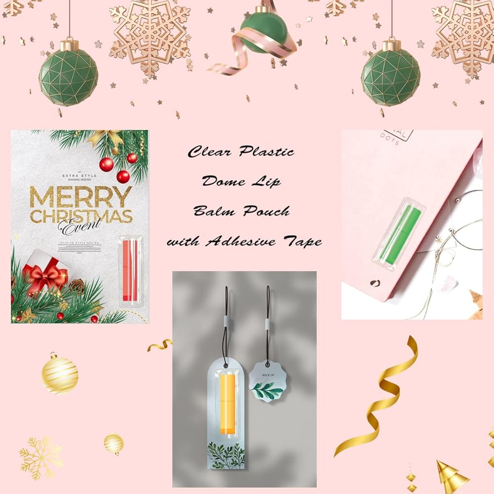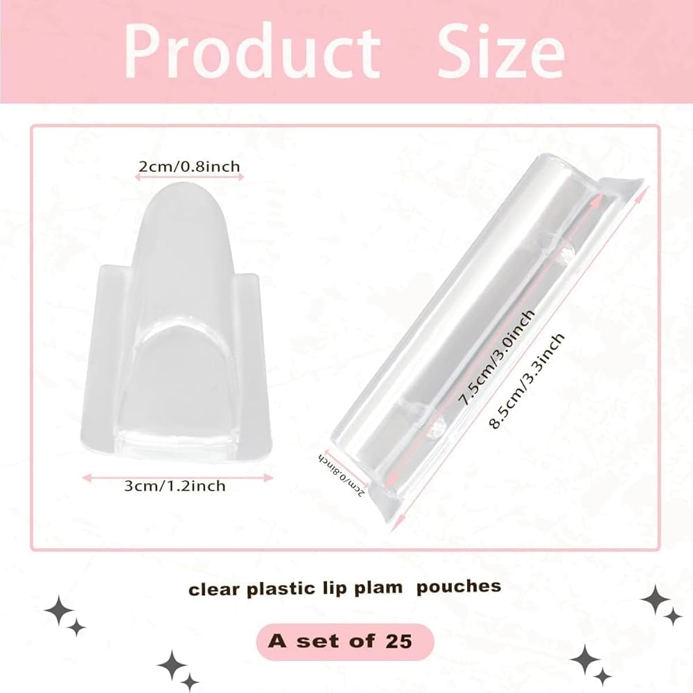 Lip balm plastic pouches: Set contains 20 clear lip balm plastic pouches and double sided adhesive can store 3" x 0.8" x 0.8" size lip balm. Can also be used as cards to hold money and other items. and comes with 20 strong adhesive, easy to use, can meet the needs of daily DIY cards.