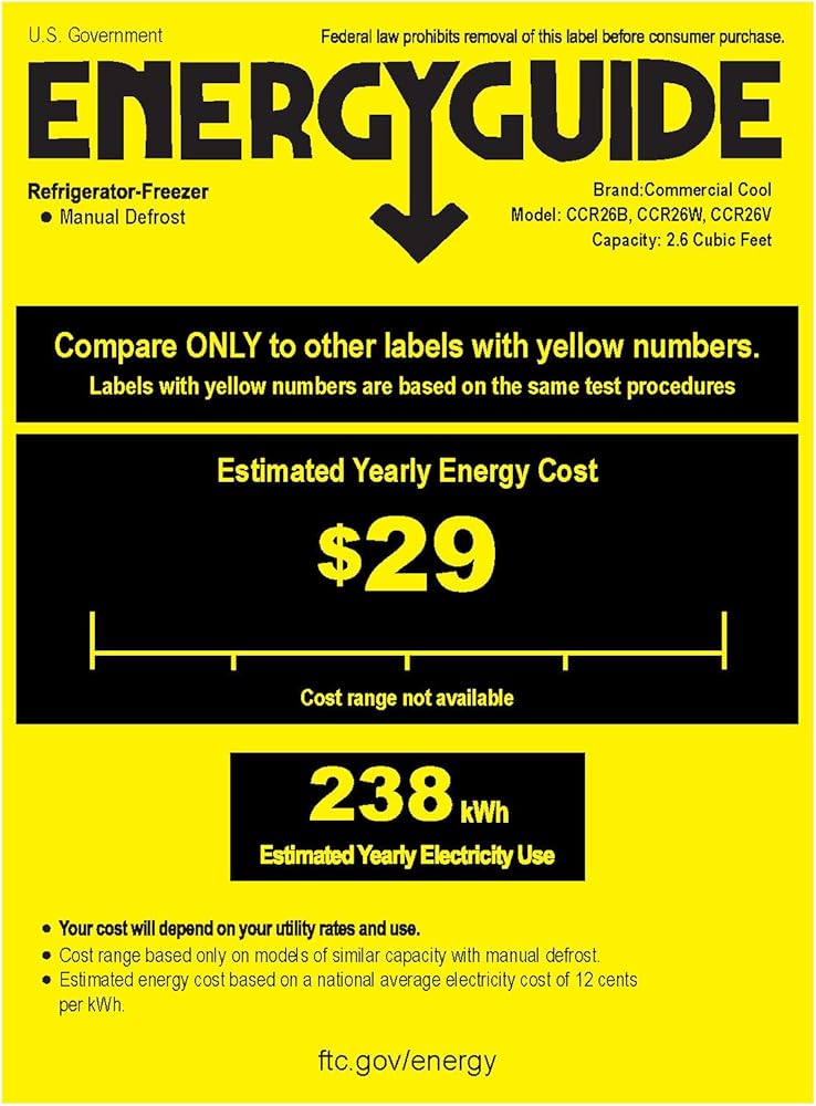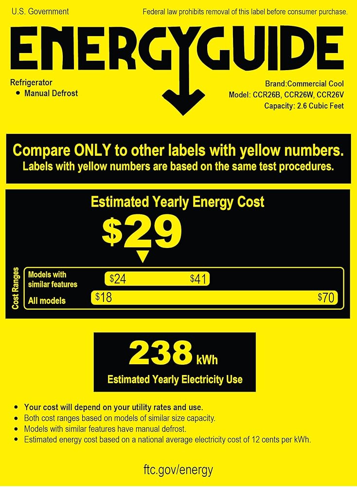 Compliant to DOE 2014 Standards, R600a Refrigerant